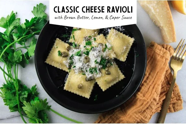 Classic Cheese Ravioli with Brown Butter, Lemon, and Caper Sauce